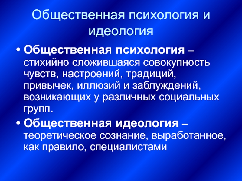 традиций, привычек, иллюзий и заблуждений, возникающих у различных социальных групп.