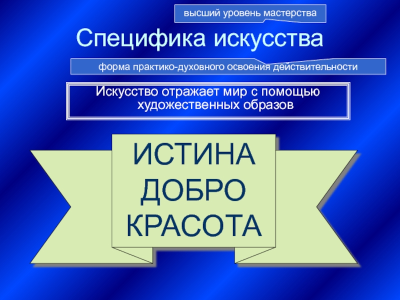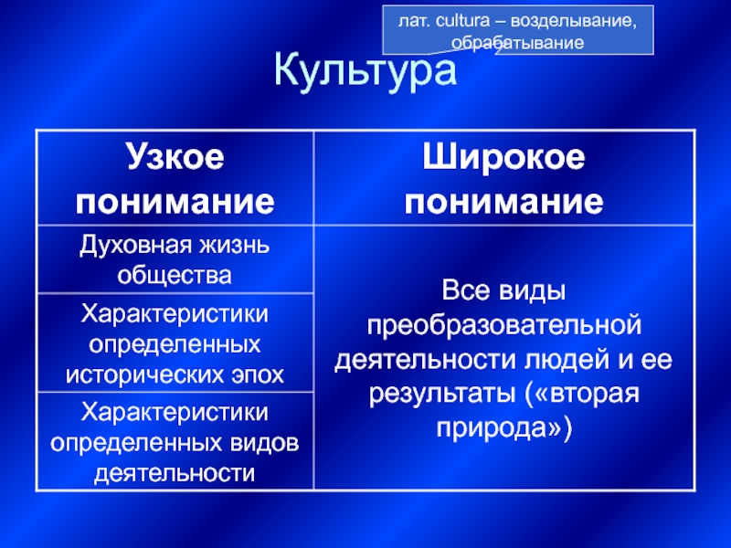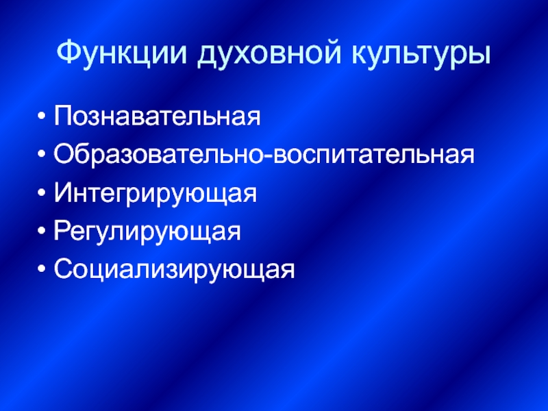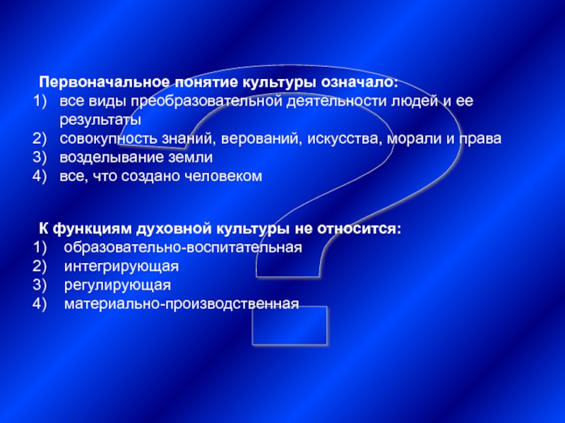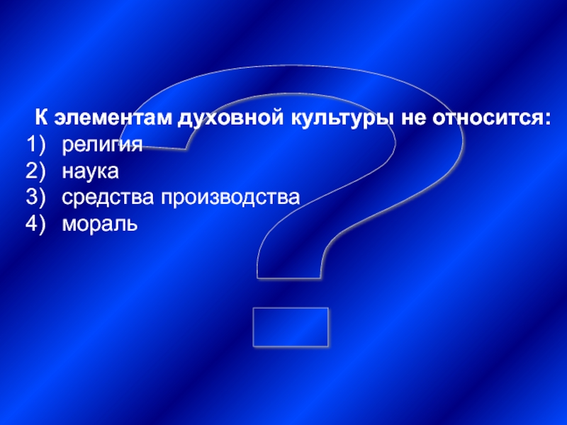 Духовная культура – процесс духовного творчества и его результаты: научные открытия, произведения искусства, нравственные ценности и т. д.