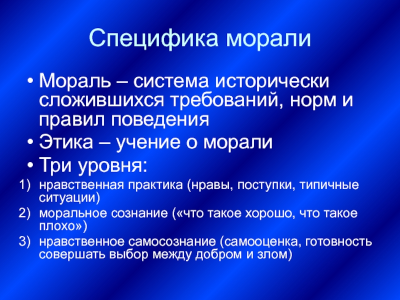 Мораль – система исторически сложившихся требований, норм и правил поведения
