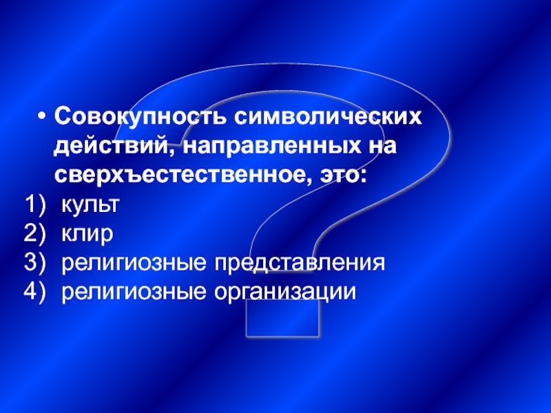 Совокупность символических действий, направленных на сверхъестественное, это: