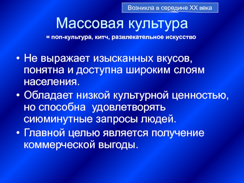 низкой культурной ценностью, но способна удовлетворять сиюминутные запросы людей.