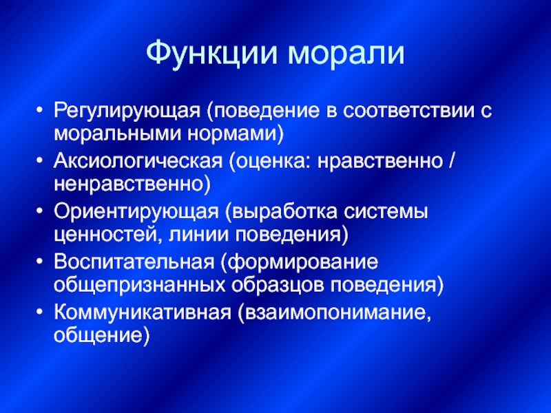 Функция морали, которая заключается в оценке поступков, взглядов, отношений между людьми,
