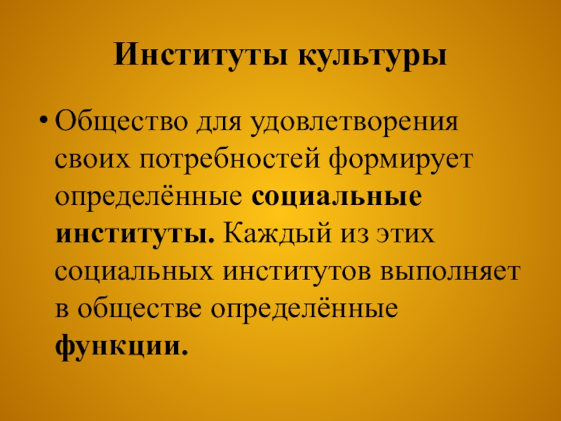 Общество для удовлетворения своих потребностей формирует определённые социальные институты. Каждый