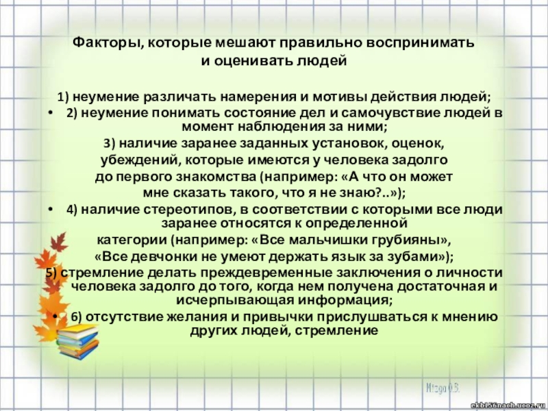 Слайд 22Факторы, которые мешают правильно воспринимать