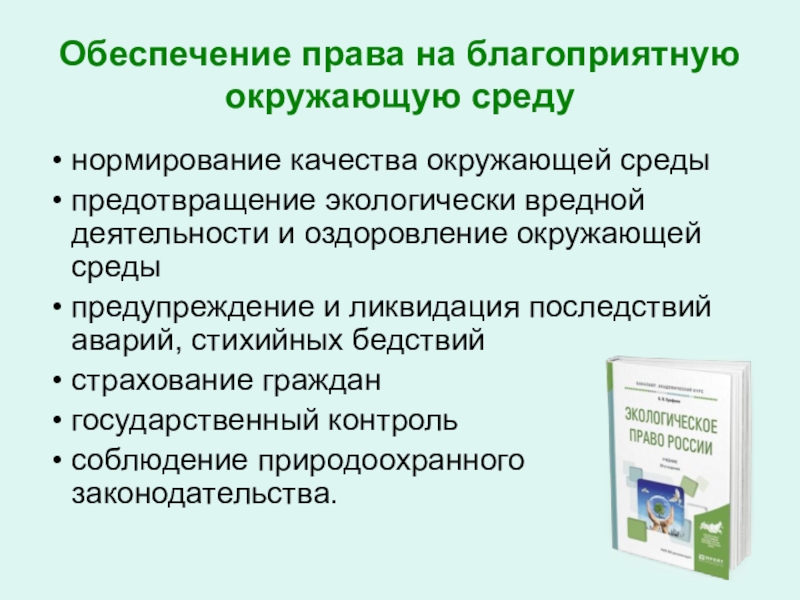 Слайд 8Обеспечение права на благоприятную окружающую среду