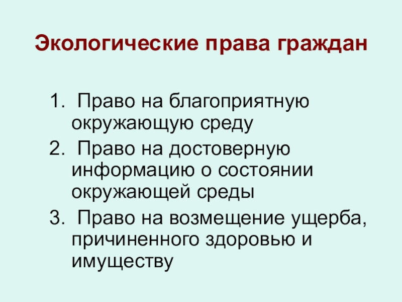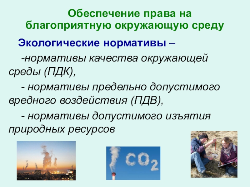Слайд 9Обеспечение права на благоприятную окружающую среду