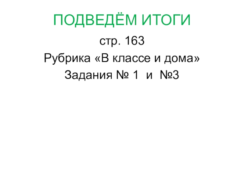 ПОДВЕДЁМ ИТОГИ стр. 163Рубрика «В классе и дома»Задания № 1 и №3