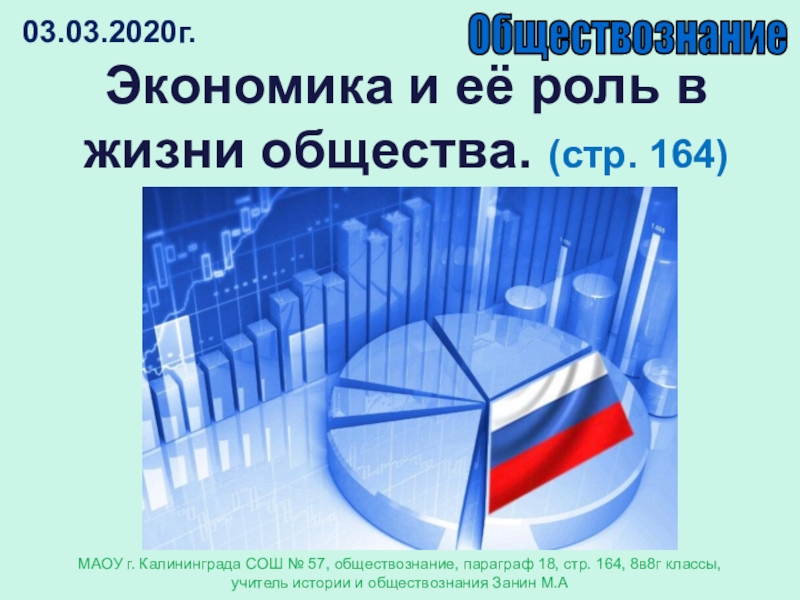 г.Экономика и её роль в жизни общества. (стр. 164)ОбществознаниеМАОУ г. Калининграда СОШ № 57, обществознание, параграф 18, стр. 164, 8в8г классы, учитель истории и обществознания Занин М.А