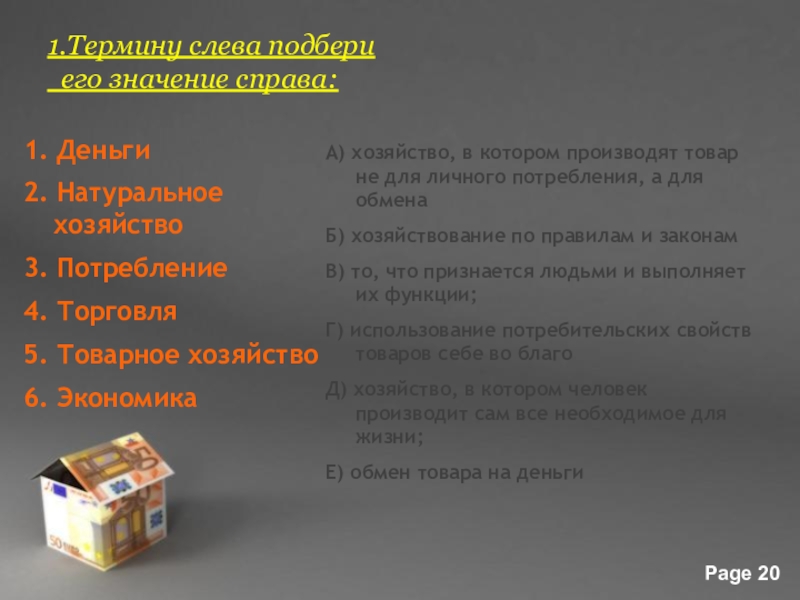 Д) хозяйство, в котором человек производит сам все необходимое для жизни;