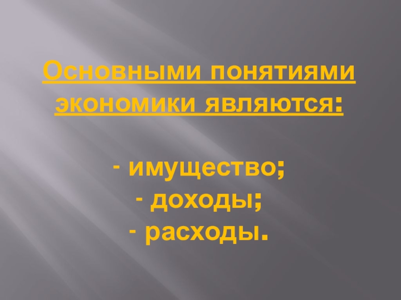 Основными понятиями экономики являются:  - имущество; - доходы; - расходы.