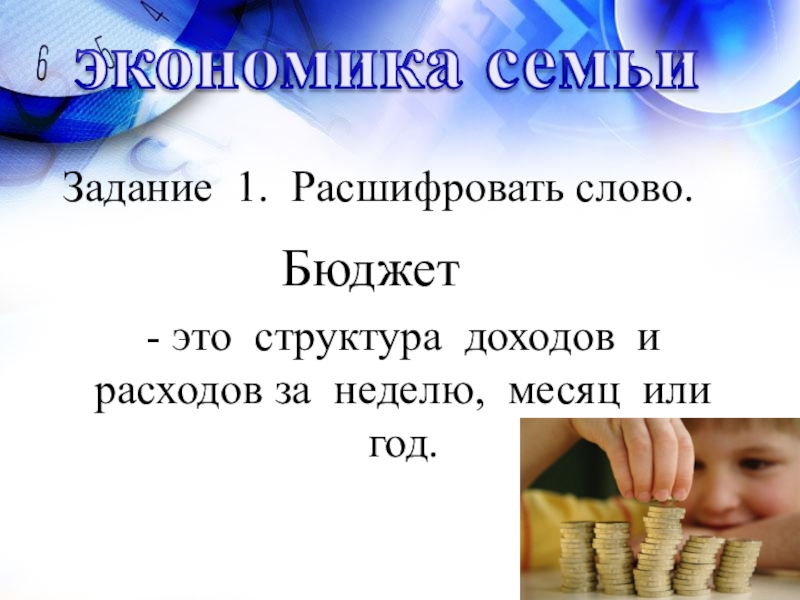 Задание 1. Расшифровать слово. Бюджет- это структура доходов и расходов за неделю, месяц или год.