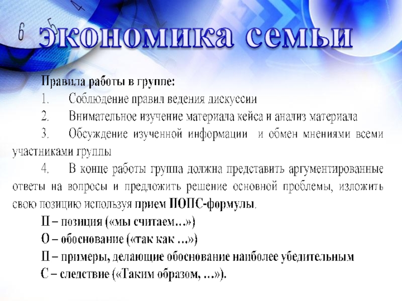 Презентация, доклад по обществознанию на тему Экономика семьи.
