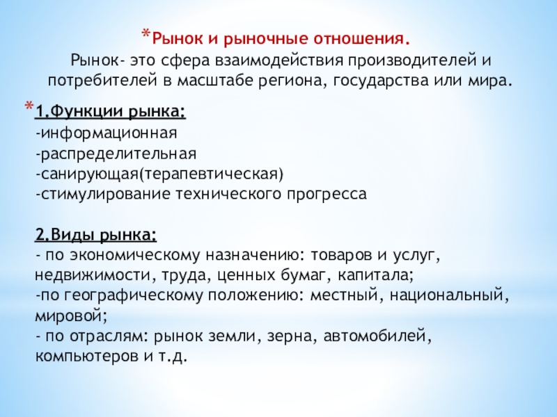 Рынок- это сфера взаимодействия производителей и потребителей в
