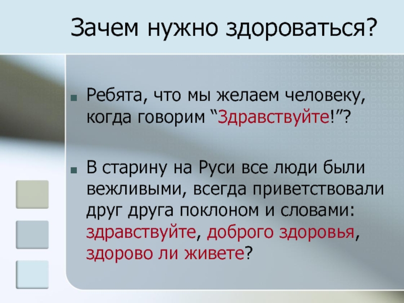 Ребята, что мы желаем человеку, когда говорим “Здравствуйте!”?