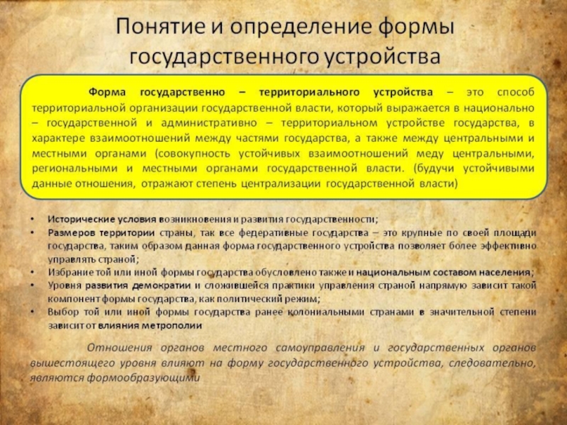 Презентация, доклад по обществознанию на тему Формы территориально - государственного устройства