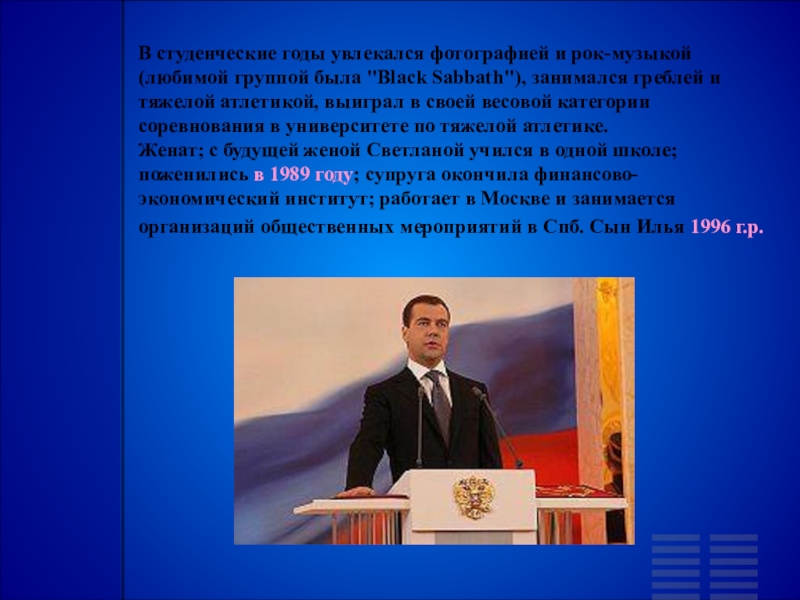 Слайд 8В студенческие годы увлекался фотографией и рок-музыкой (любимой группой была "Black