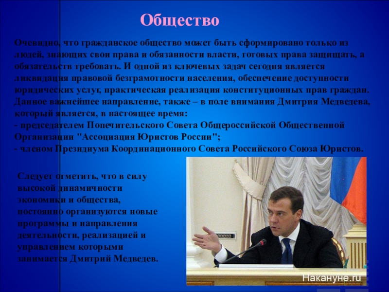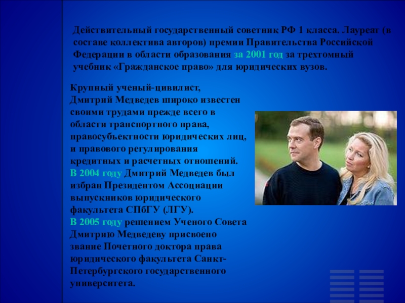 Слайд 7Крупный ученый-цивилист, Дмитрий Медведев широко известен своими трудами прежде всего в области