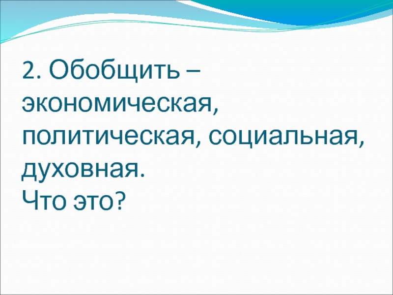 Слайд 62. Обобщить – экономическая, политическая, социальная, духовная.