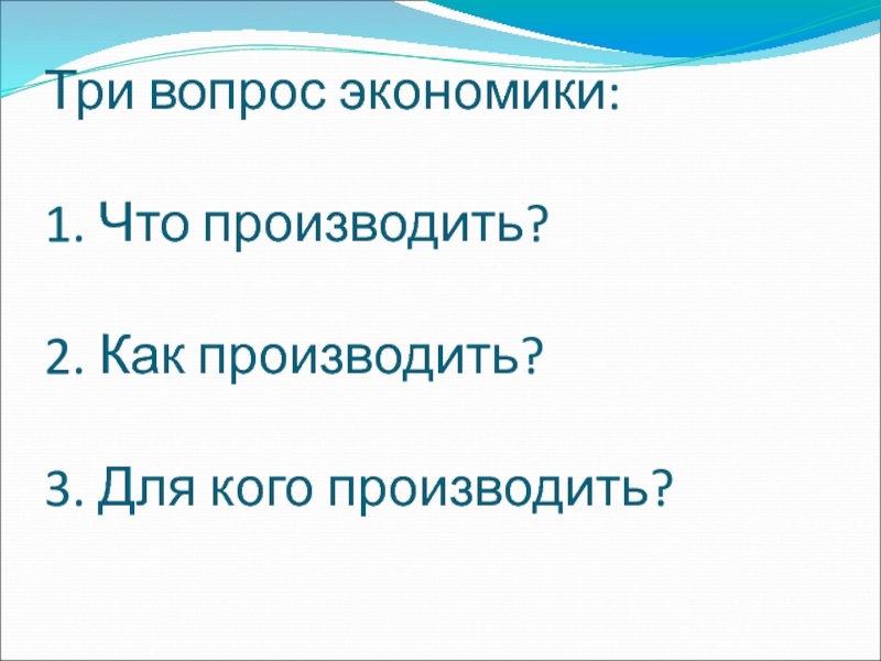 ВЫВОД: экономическая система способствует решению задачи эффективного использования ограниченных ресурсов. Основная задача – привести в соответствие безграничные потребности и ограниченные возможности членов общества через решение вопросов: что, как и для кого производить?