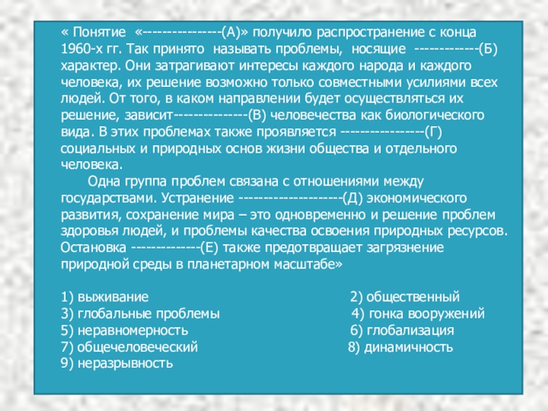 Появление глобальных проблем