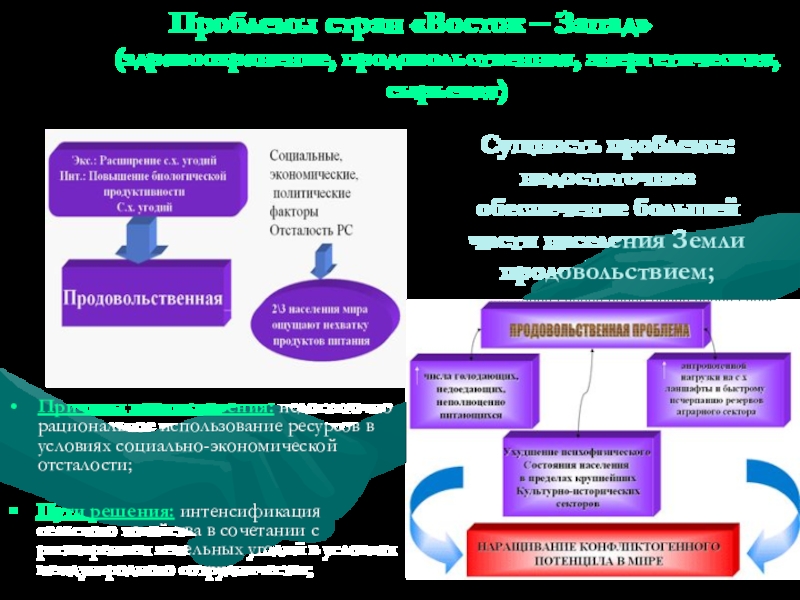 Сущность проблемы: недостаточное обеспечение большей части населения Земли продовольствием;