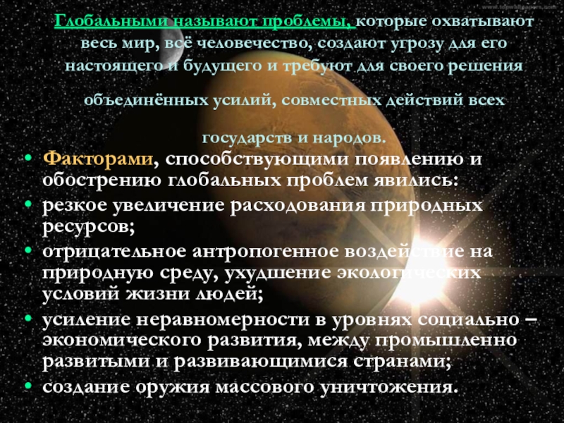 Факторами, способствующими появлению и обострению глобальных проблем явились: