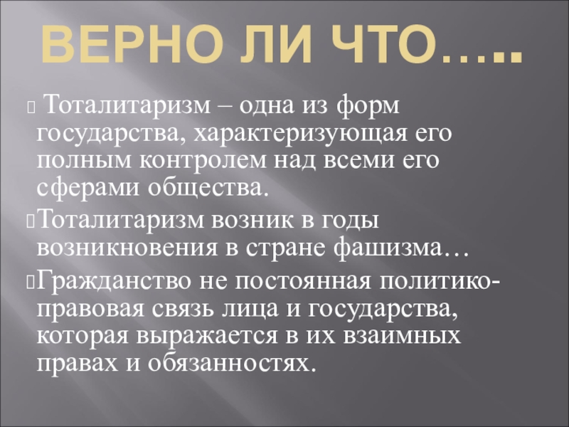 Тоталитаризм возник в годы возникновения в стране фашизма…