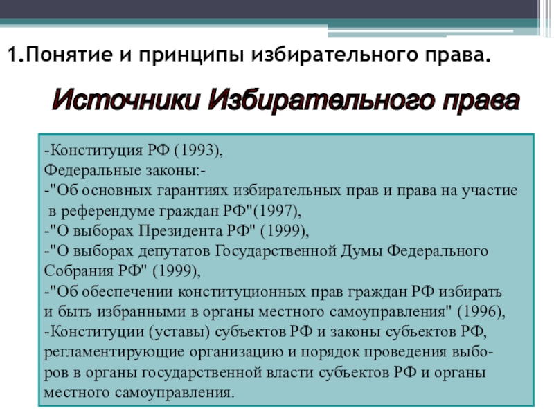 избирательных прав и права на участие в референдуме граждан РФ" и другими законами о выборах.