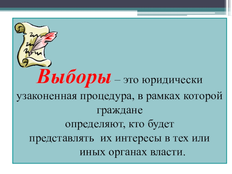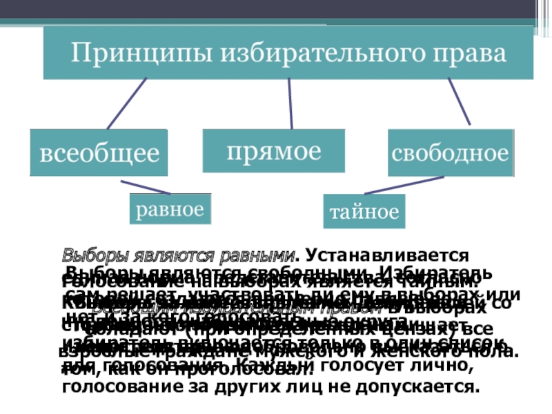 Выборы являются свободными. Избиратель сам решает, участвовать ли ему в выборах или нет и за кого голосовать.