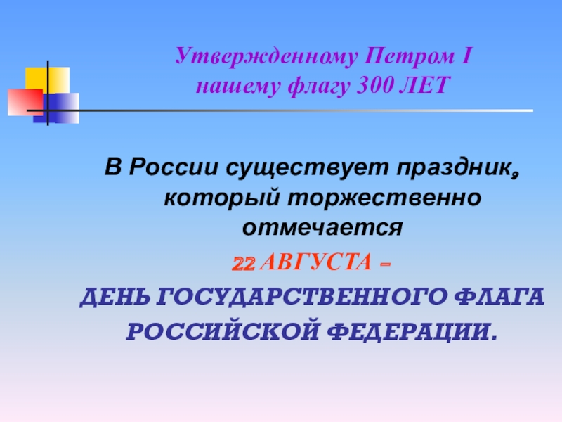 Слайд 7 С петровских времен известен точный порядок полос на флаге – белая,