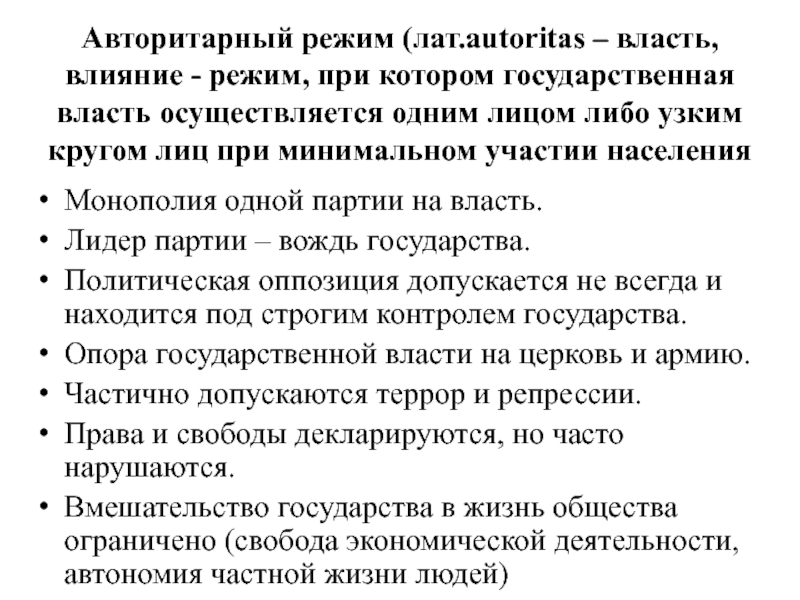 Политическая оппозиция допускается не всегда и находится под строгим контролем государства.