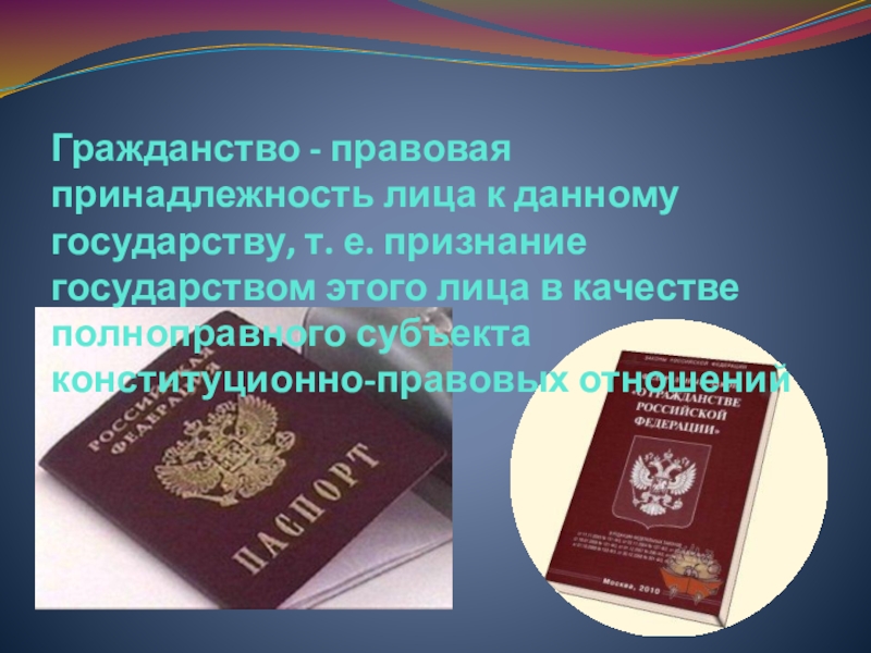 Гражданство - правовая принадлежность лица к данному государству, т. е. признание государством этого лица в качестве полноправного