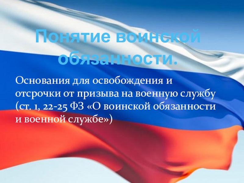 Понятие воинской обязанности.Основания для освобождения и отсрочки от призыва на военную службу (ст. 1, 22-25 ФЗ «О