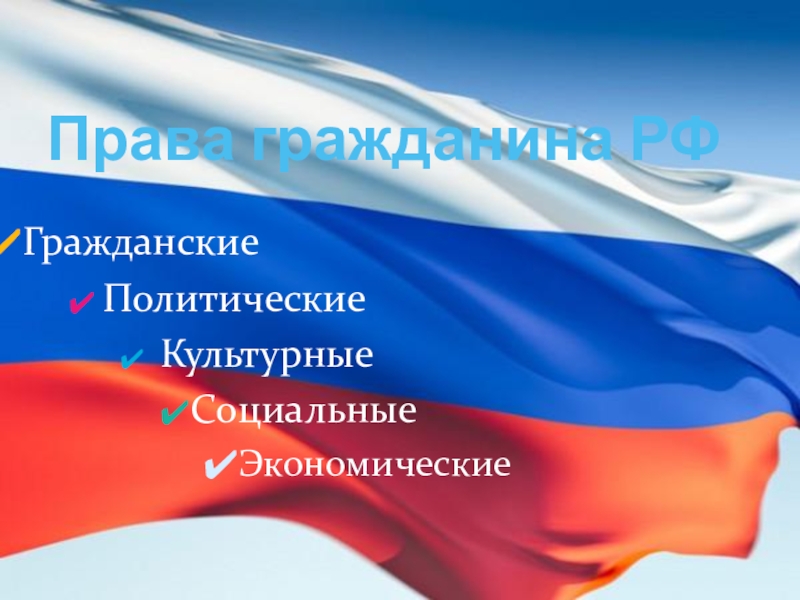 Права гражданина РФГражданские  Политические  КультурныеСоциальныеЭкономические