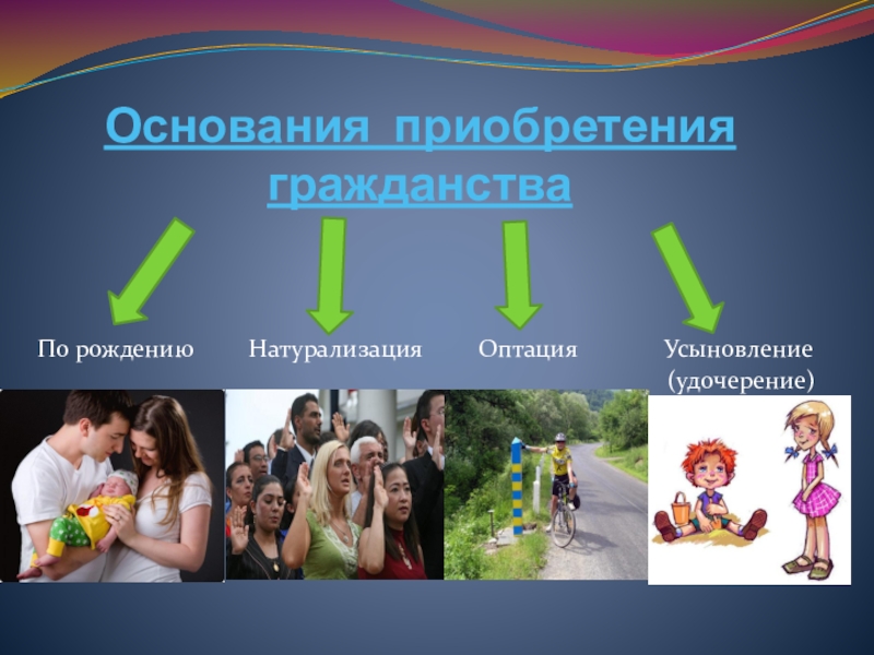 Основания приобретения гражданстваПо рождению     Натурализация     Оптация