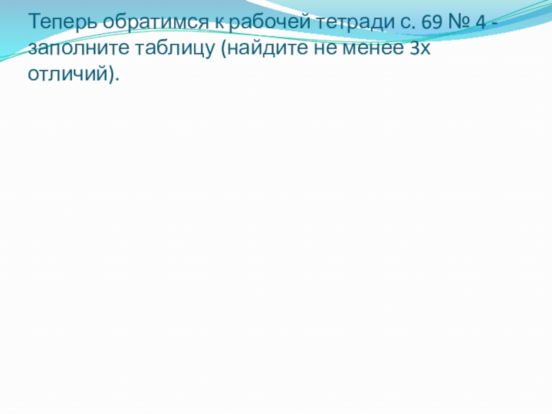 Слайд 35Теперь обратимся к рабочей тетради с. 69 № 4 - заполните