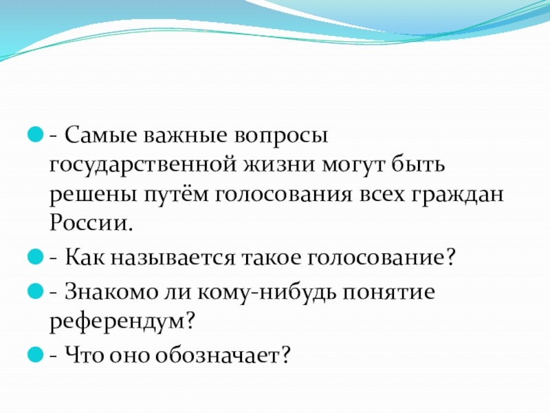 Слайд 19- Самые важные вопросы государственной жизни могут быть решены путём голосования