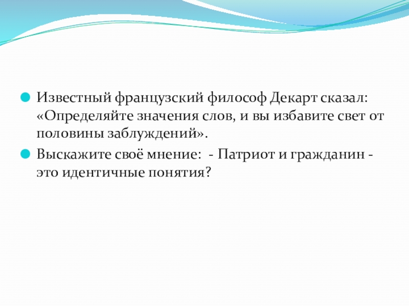 Слайд 8Известный французский философ Декарт сказал: «Определяйте значения слов, и вы избавите
