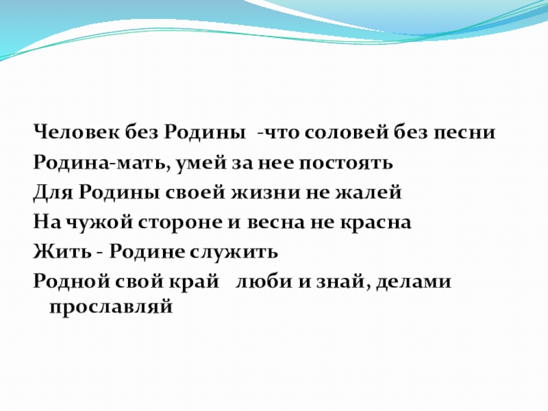 Слайд 34Человек без Родины -что соловей без песни