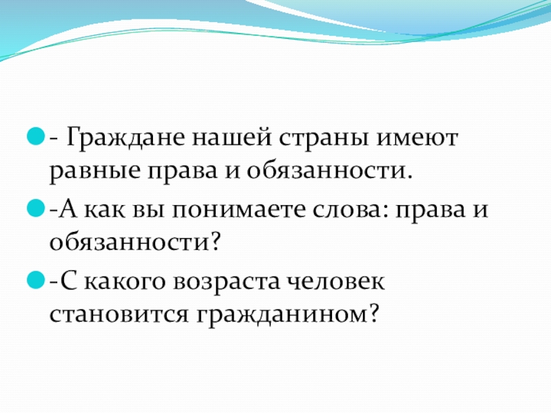 Слайд 23- Граждане нашей страны имеют равные права и обязанности.