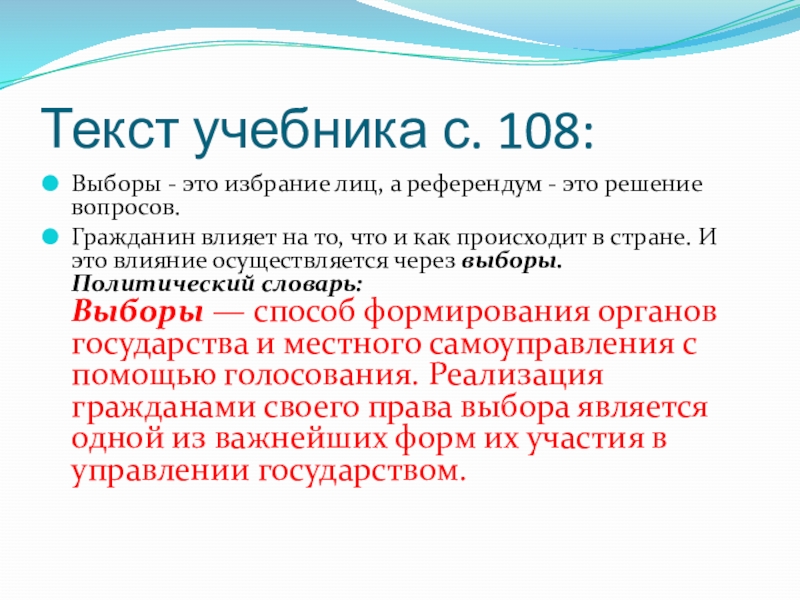 Слайд 22Текст учебника с. 108 :