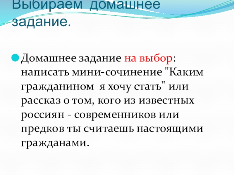 Домашнее задание на выбор: написать мини-сочинение "Каким гражданином я