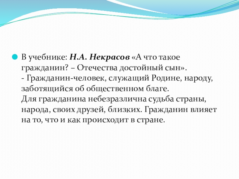Слайд 11В учебнике: Н.А. Некрасов «А что такое гражданин? – Отечества достойный