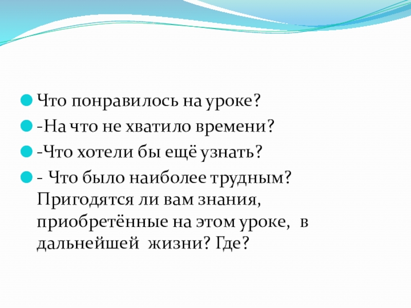 - Что было наиболее трудным? Пригодятся ли вам знания, приобретённые на этом уроке, в дальнейшей жизни? Где?