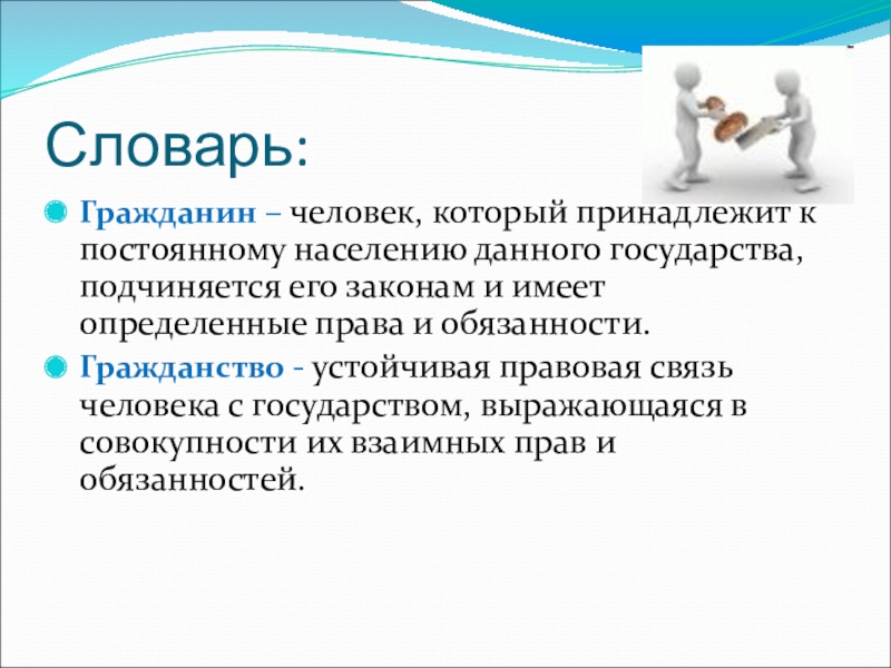 Гражданин – человек, который принадлежит к постоянному населению данного государства, подчиняется