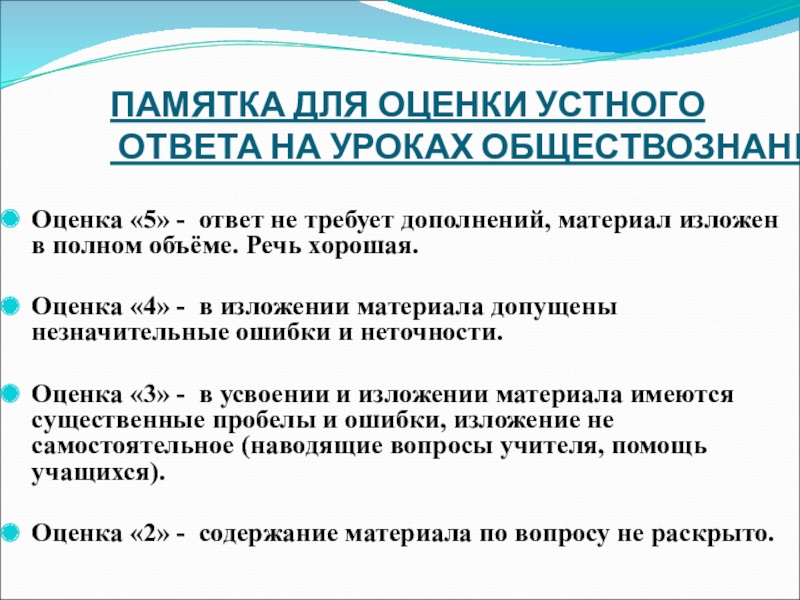 ПАМЯТКА ДЛЯ ОЦЕНКИ УСТНОГО