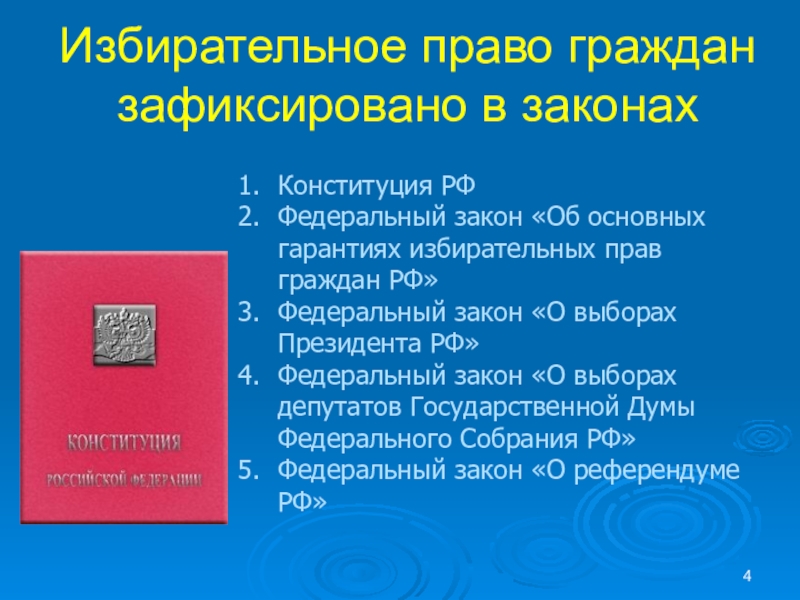 Избирательное право граждан зафиксировано в законах