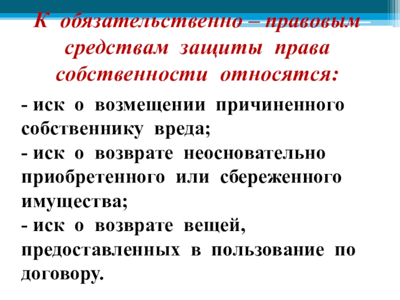 К обязательственно – правовым средствам защиты права собственности относятся: