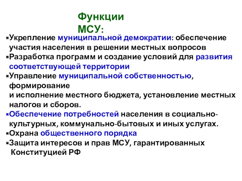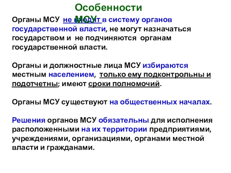 Особенности МСУ