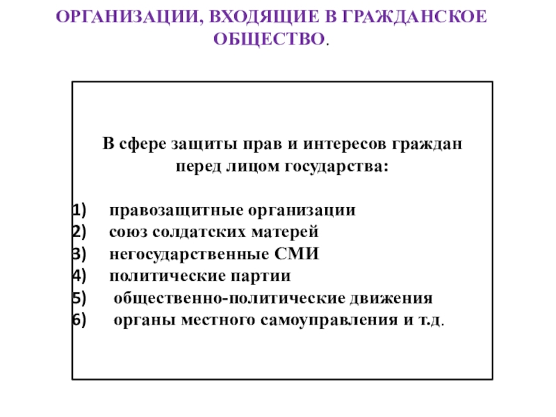 ОРГАНИЗАЦИИ, ВХОДЯЩИЕ В ГРАЖДАНСКОЕ ОБЩЕСТВО.